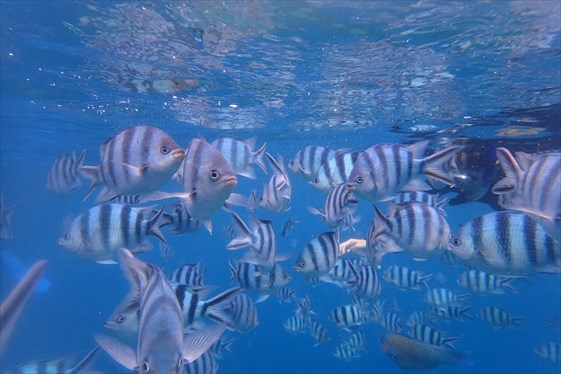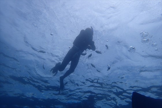 洞窟の中は水の流れが停滞しているので、人が多くなるとどうしても海水が汚れてくるのだが、長く続いた台風によって停滞していた海流が大きく動いたらしく、むしろ透明度は普段以上に抜群だった。 水面下の空洞から差し込む太陽光が海底に反射して、洞窟内に青い光をもたらす奇跡のマリンブルー。 かわいい魚もたくさん見られたし、ずっと引きこもっていた直後だけに良い息抜きになった。 土砂降りの中を走っていた水着姿の若い子たちの泣きそうな顔が一瞬、脳裏に浮かんで消えた。 |