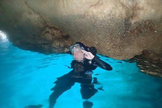 ビーチに向かう姿がやけくそにしか見えないが、本人はたぶん真剣 限られた滞在期間の中、せっかくの沖縄なのだから無理やりにでも泳ぎたい気持ちは分からなくもなかった。誰がどう見ても雨がやむ気配はゼロだったが。 そんな台風続きだったある日のこと。ようやく晴れ間がみえた休日の朝だった。 それまでずっと入るのを禁止されていた「青の洞窟」が解禁されたという連絡が入ると、いそいそと準備をして出かける。