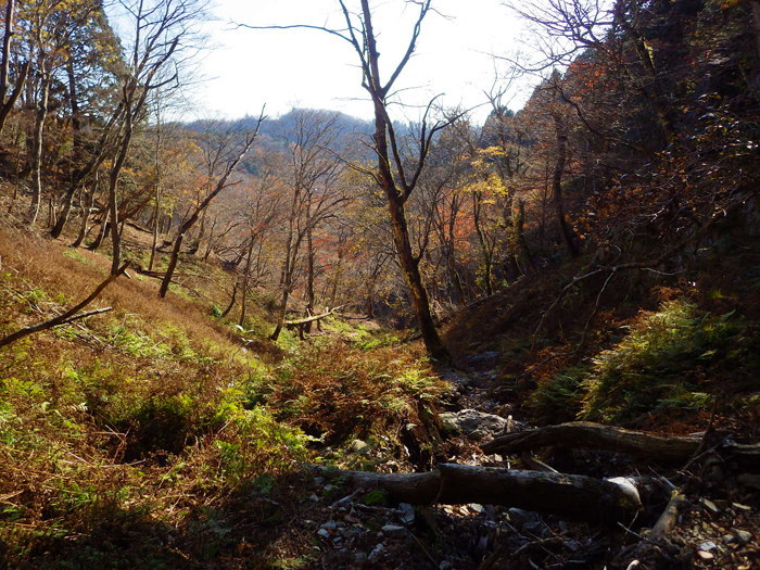 少し踏み跡らしいが・・・違うようだ | 岩を避けて谷を下る | |