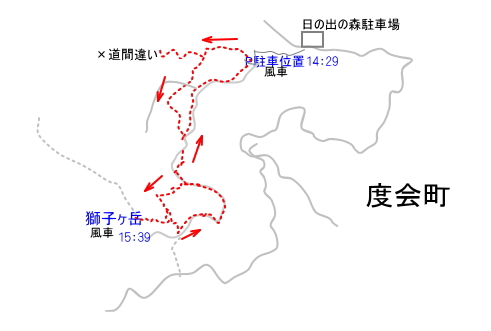 14:29 日の出の森展望広場をスタート 進むのは猿谷ルート | ||