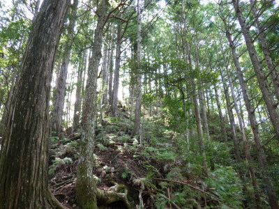 山頂に到着し、辺りをくるっと回ったら、今、自分が上がって来た方向がまったく分からなくなった。 周囲の景色が変わらないのが理由だと思うが、ただ、法師山への方向だけはなんとなく分かった。地図が無ければ自分の進む方向は分からないことを今更ながらに実感した。 |