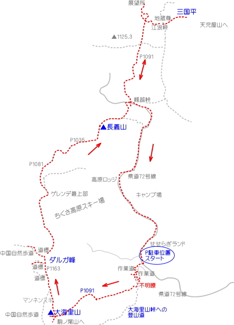 | 10:00 峰越峠 | 三国平登山口11:19 | |