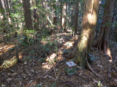 | 地理院地図上において、樫尾森山へは南側から向かう破線道が記されている。この破線まで、龍神本宮線林道から比較的短い距離で行けそうな尾根を選んでみた。実際に歩けるかどうかは、現地確認となったが、問題無く進むことができた。 |