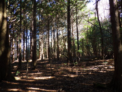 | 地図上で選んだ尾根を利用することができ、最短距離で、樫尾森山への破線道に合流することができた。 |