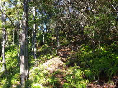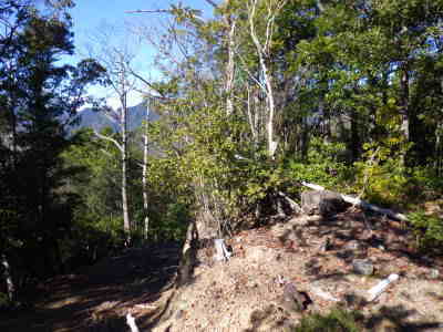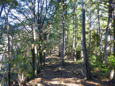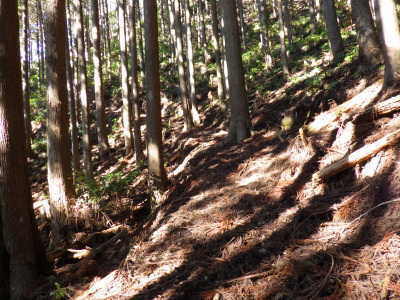 富士根山の西側には、山頂をかすめるように作業道が通じていた |