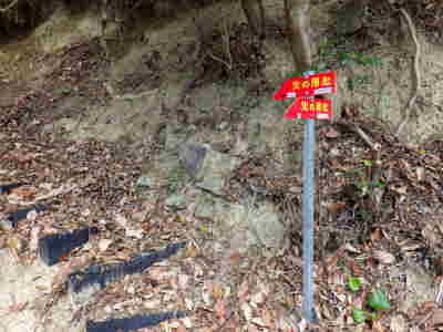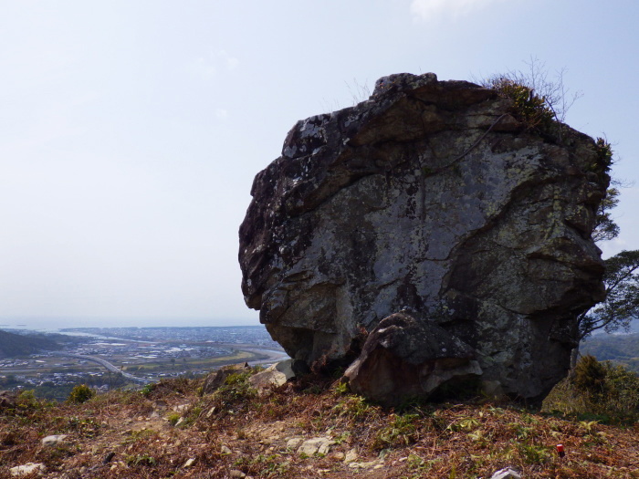 | オクボ山は道成寺の東、湯浅御坊道路の川辺IC近くに位置する低山。オクボ山から南東に延びる尾根伝いには三国山があり、ここには三国岩と呼ばれる岩が鎮座する。 |