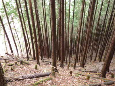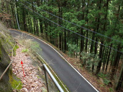 | 下りづらい斜面・・(振り返る) | 林道が見えた | |