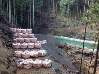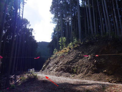 | 分岐点 このまま作業道を通すことにした | 作業道の終点は工事中だった | |