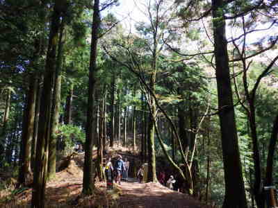 | 西行庵方面へと下る | 大半の人が立ち止まって写真を撮るので渋滞となる | |