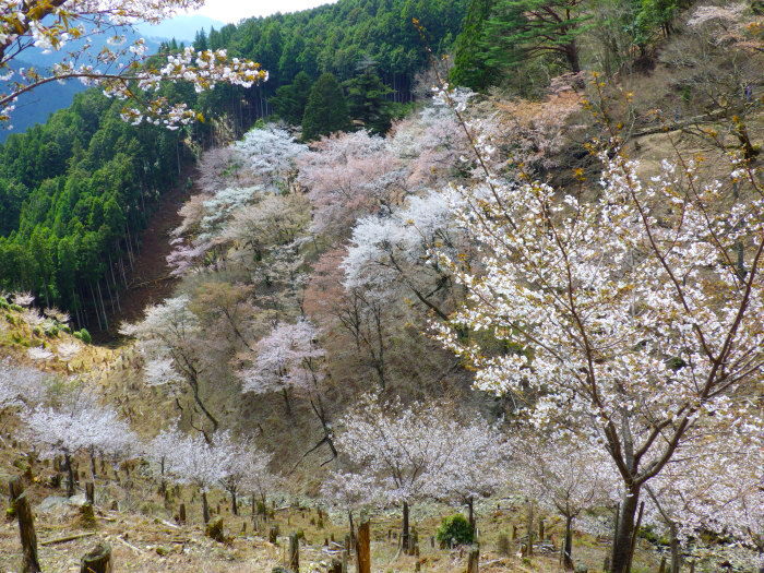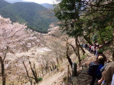 | 平地では桜も終盤となったが、標高700メートル付近の奥千本だと、未だ桜は咲いているだろうと期待して向かった。この時期は混雑するので、今回は吉野山の南西黒滝村側から向かってみた。 |